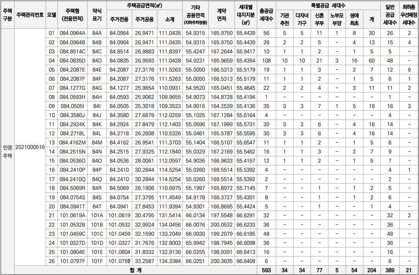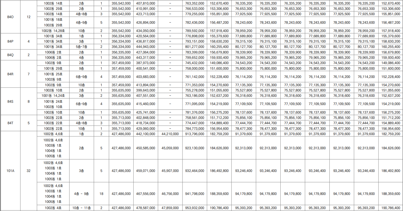 분양타입 : 84A / 84B / 84C / 84D / 84E / 84F / 84G / 84H / 84I / 84J / 84K / 84L / 84M / 84N / 84O / 84P / 84Q / 84R / 84S / 84T / 101A / 101B / 101C / 101D / 101E / 101F