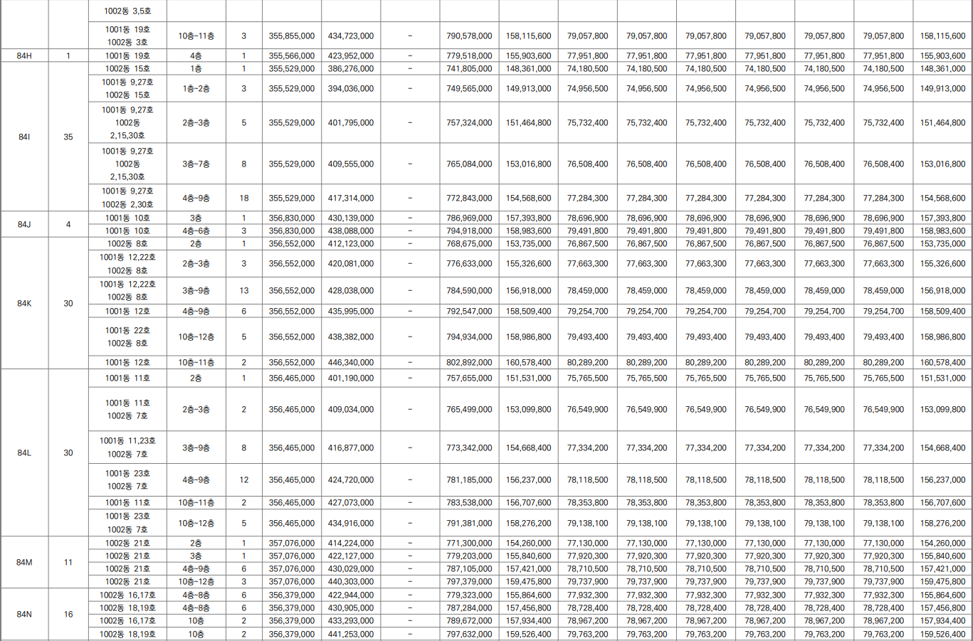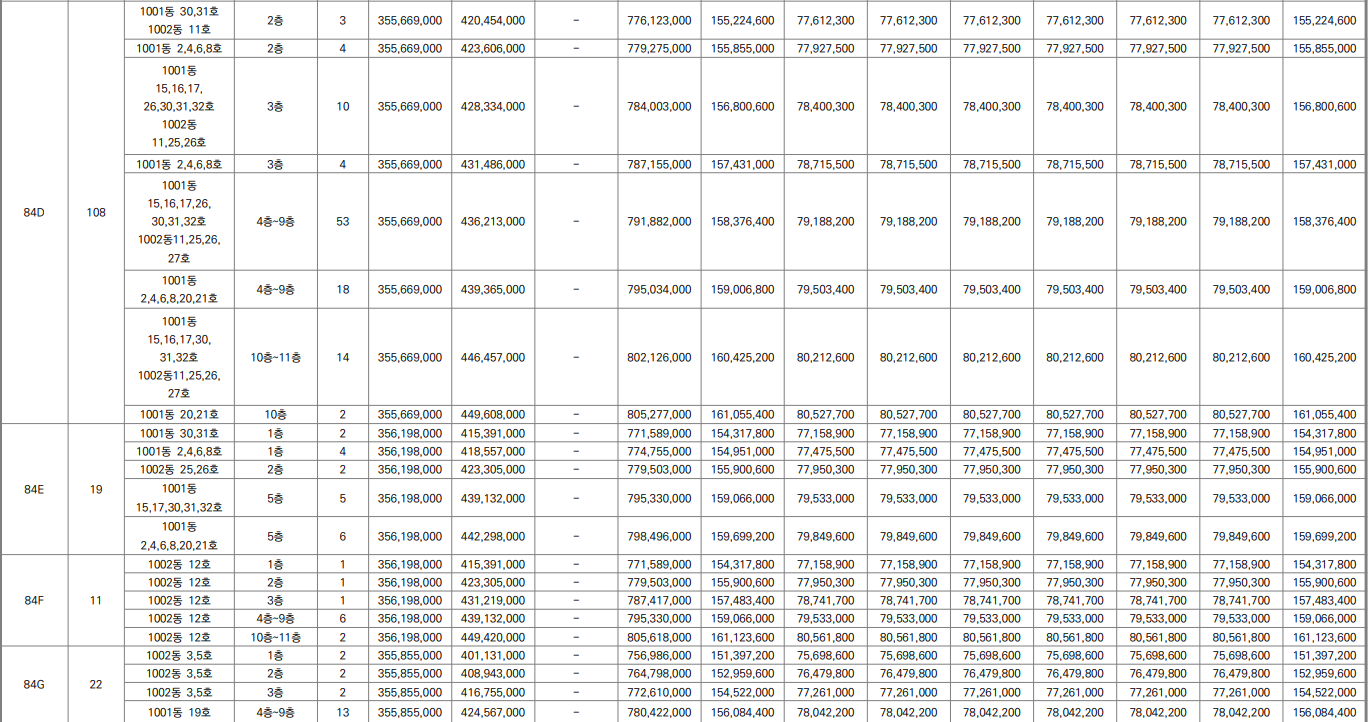 84㎡G 7억 5699만 원 ~ 7억 9058만 원