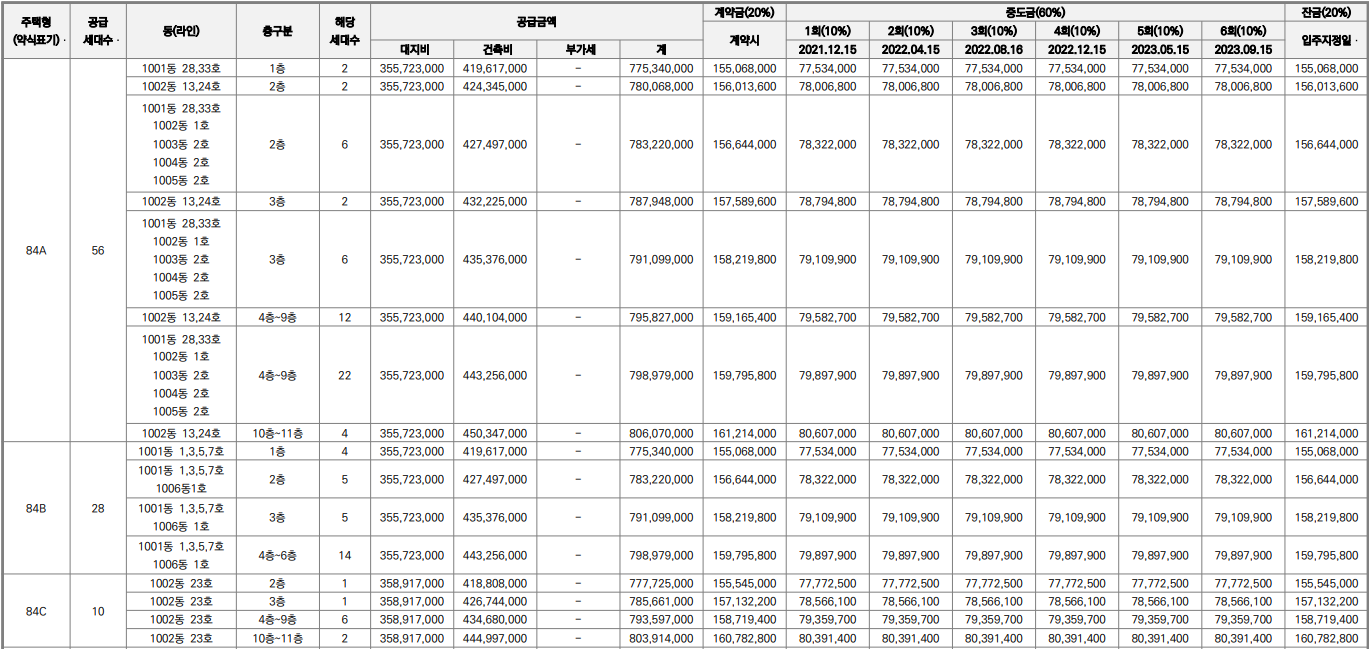 84㎡B 7억 7534만 원 ~ 7억 9898만 원