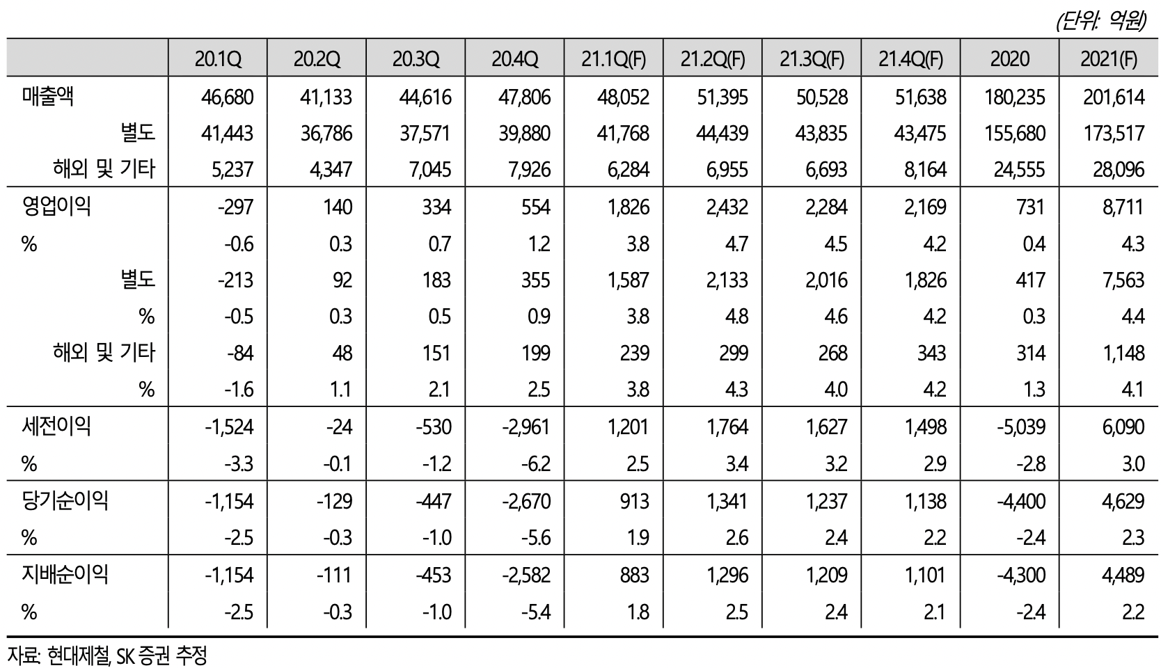 - 21년 1분기 실적은 매출액 4.8조원 영업이익 1,826억원으로 전망