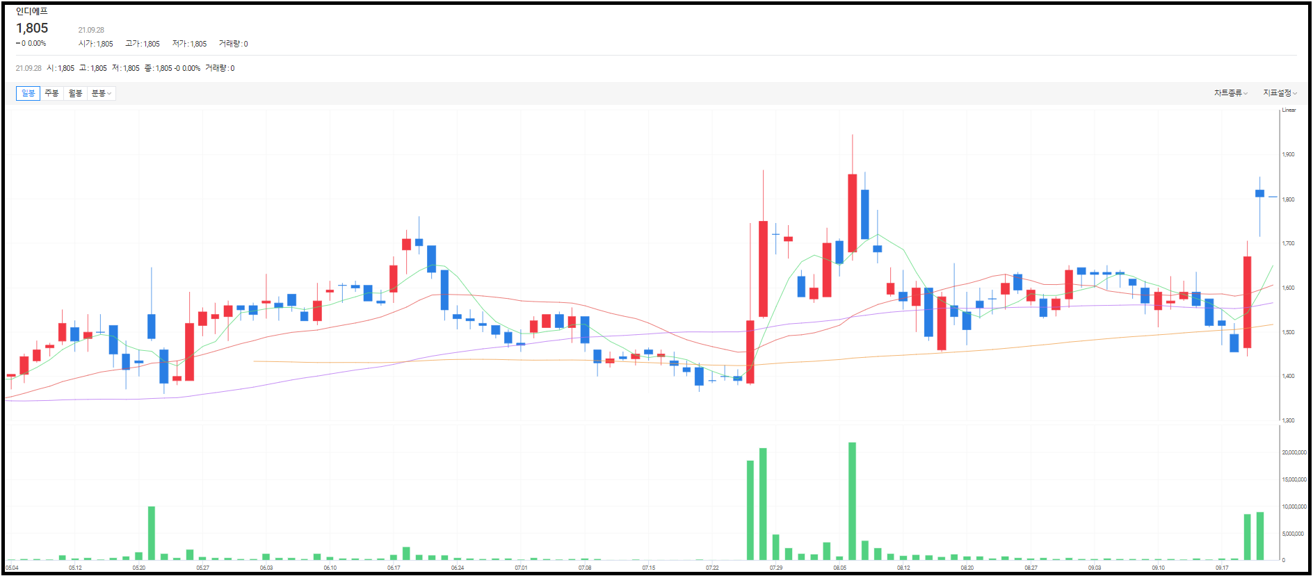 인디에프 주가가 최근 좋은 흐름을 보이고 있다.