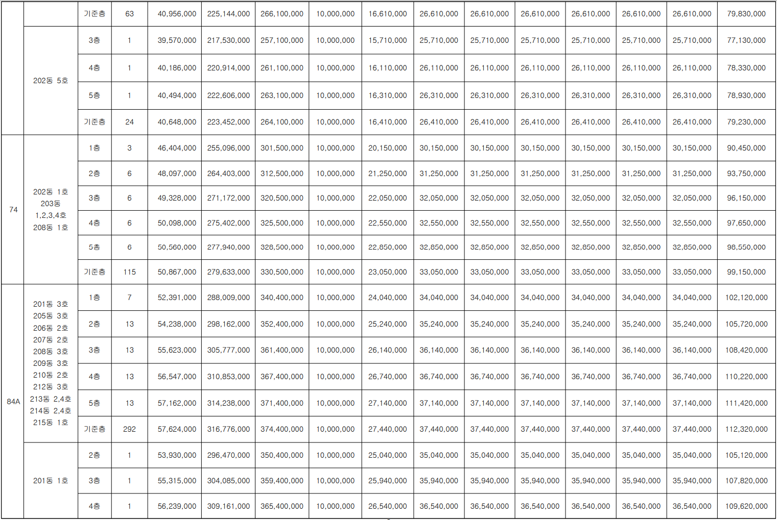 84㎡A(142세대) 3억 4040만 원 ~ 3억 7440만 원
