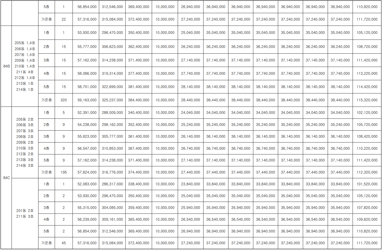 84㎡B(381세대) 3억 5040만 원 ~ 3억 8440만 원