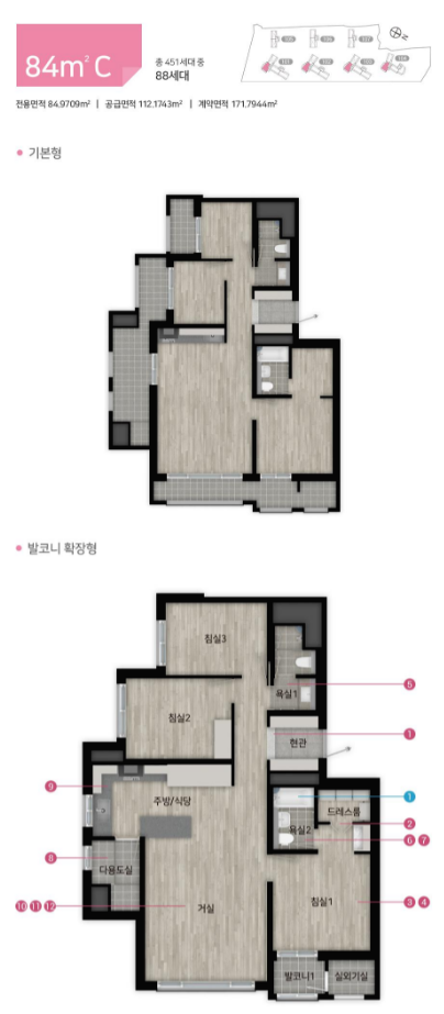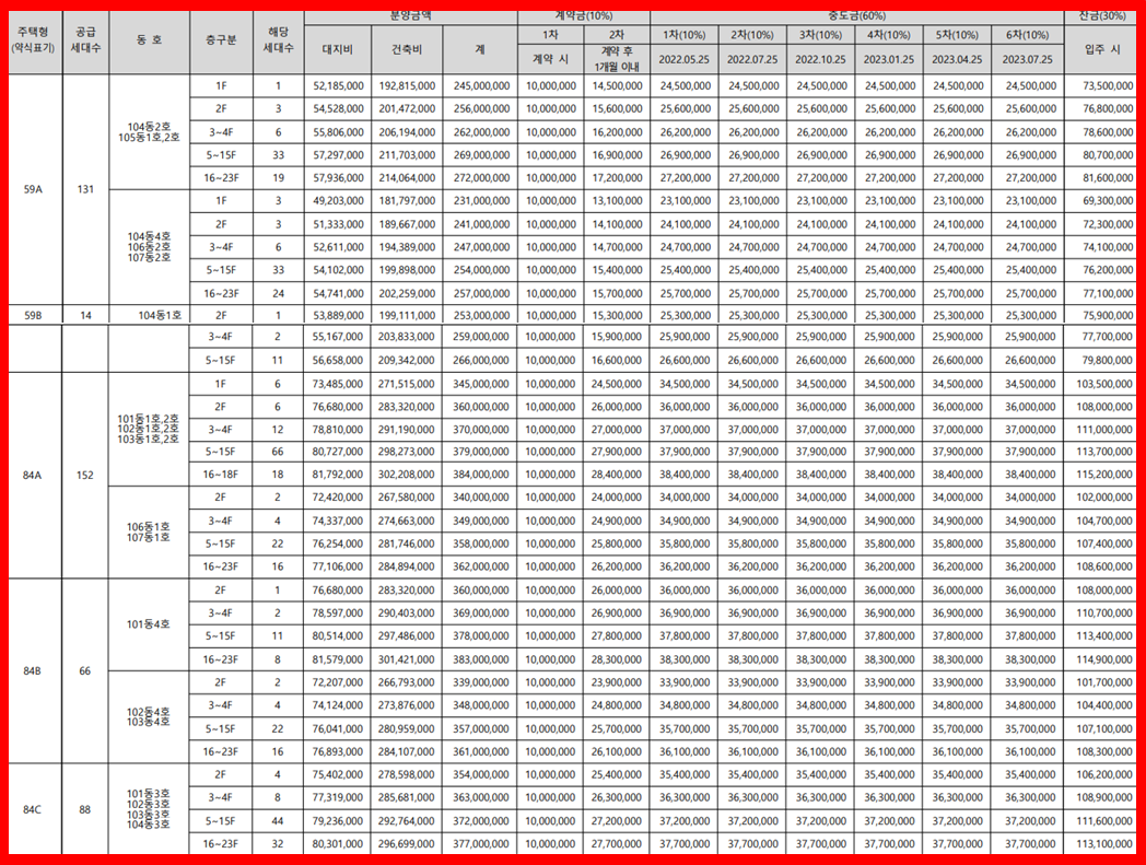84㎡C(88세대) 3억 5400만 원 ~ 3억 7700만 원