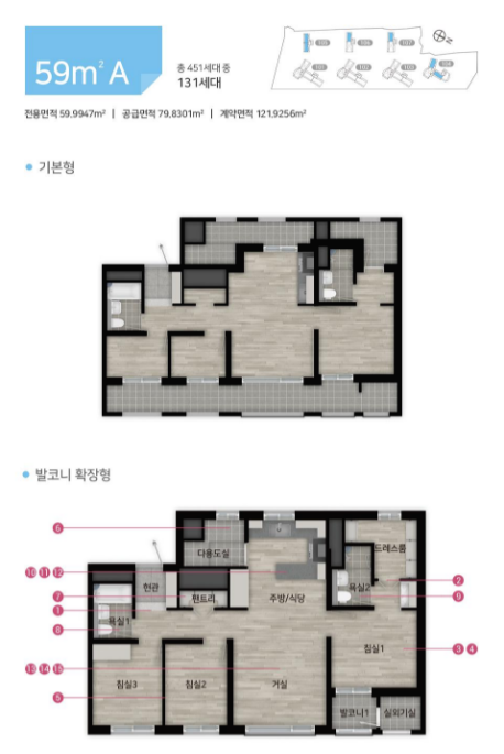 59㎡A(131세대) 2억 3100만 원 ~ 2억 7200만 원