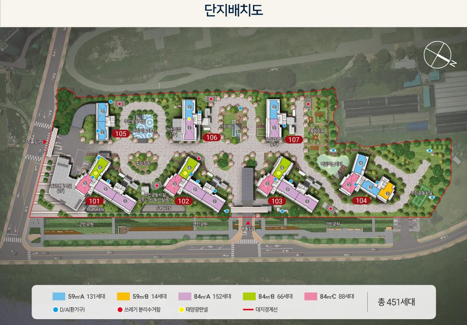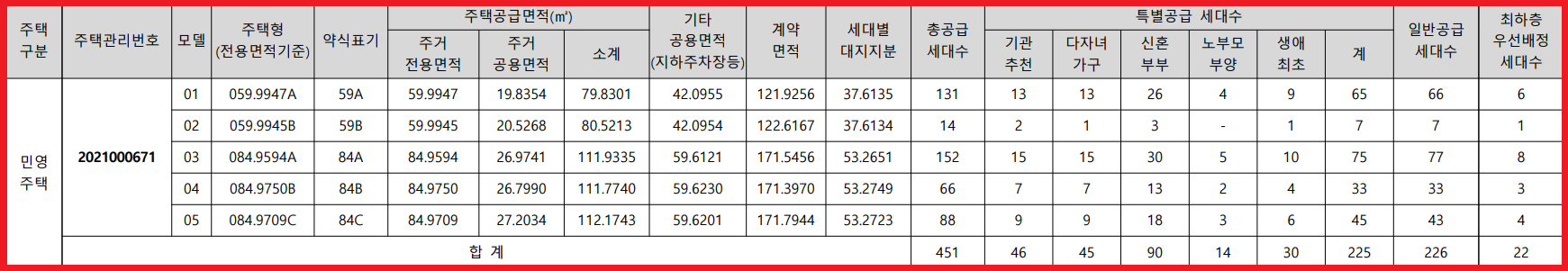 공급규모 : 아파트 지하 2층, 지상 15~23층 7개 동 총 451세대