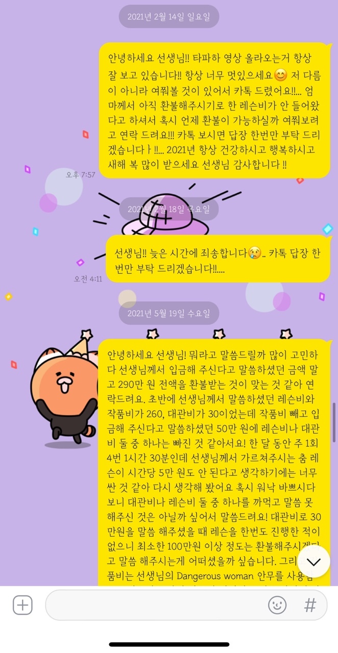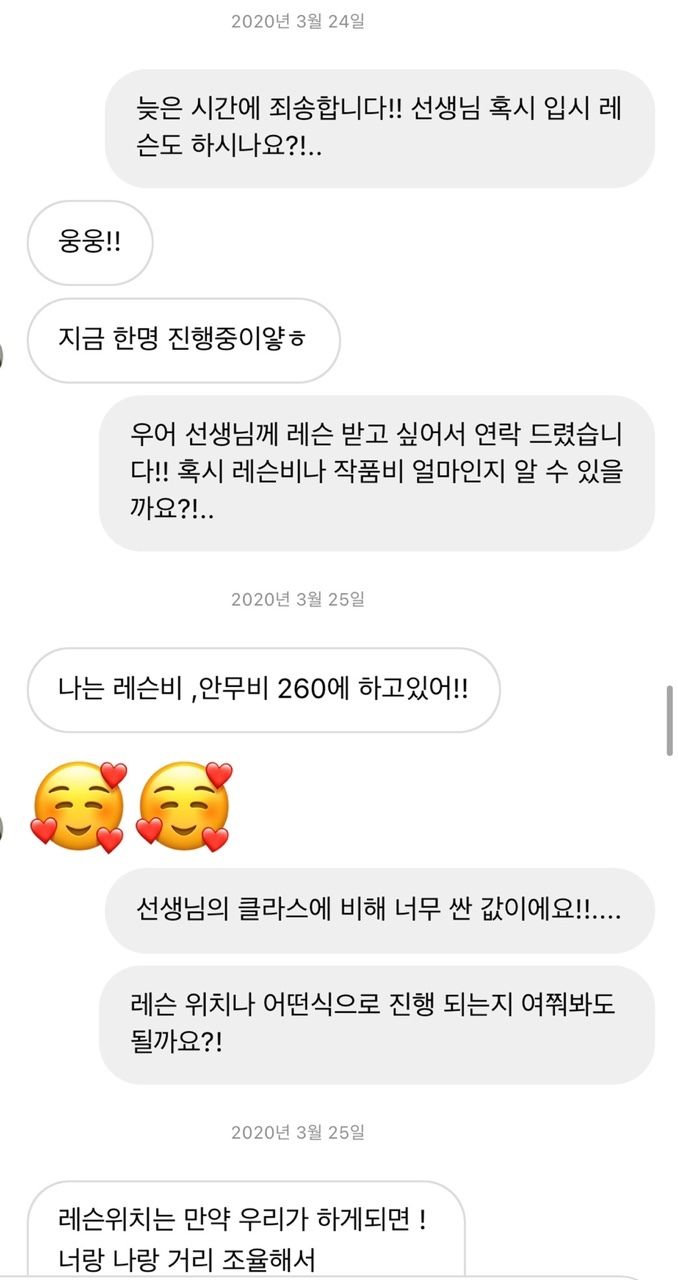 내용을 요약해보자면 2020년 4월 입시 수업을 받겠다고 합의하고 290만원 상당의 수업료를 로잘린에게 입금하였다.