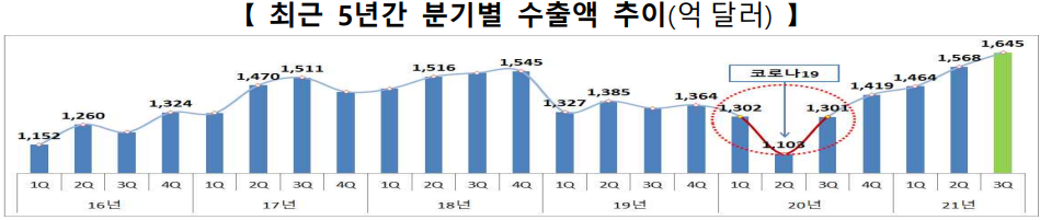- 2021년 7월 역대 1위 수출액을 기록한 이후 불과 2개월 만에 사상 최고치 다시 경신