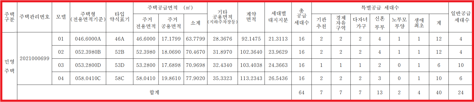 [특별공급 40세대(일반[기관추천] 7세대, 경제자유규역 7세대, 다자녀가구 7세대, 신혼부부 13세대, 노부모부양 2세대, 생애최초 4세대 포함)]