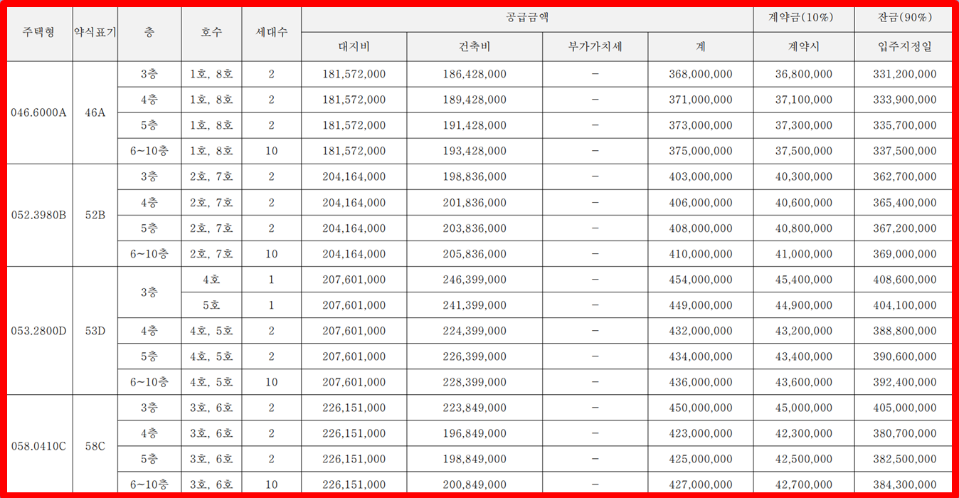 46㎡A(16세대) 3억 6800만 원 ~ 3억 7500만 원