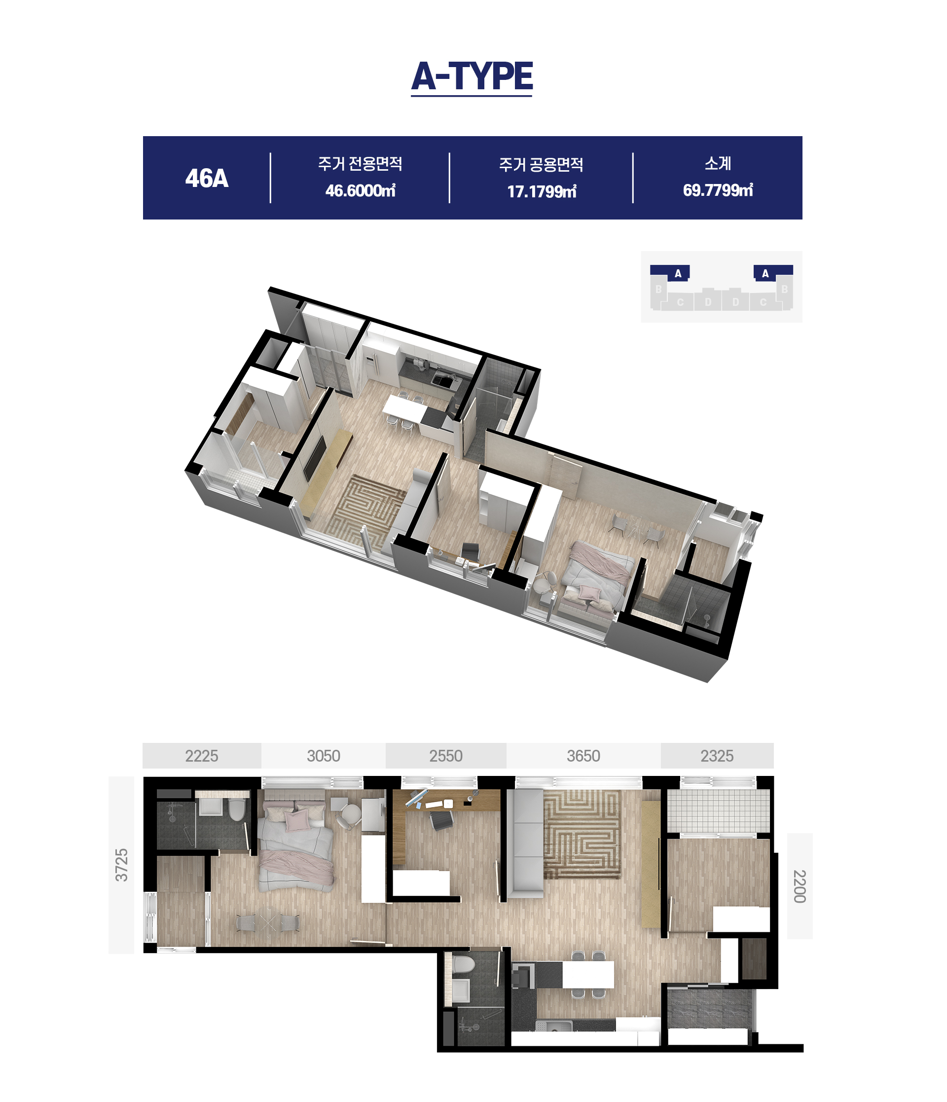 46㎡A(16세대) 3억 6800만 원 ~ 3억 7500만 원