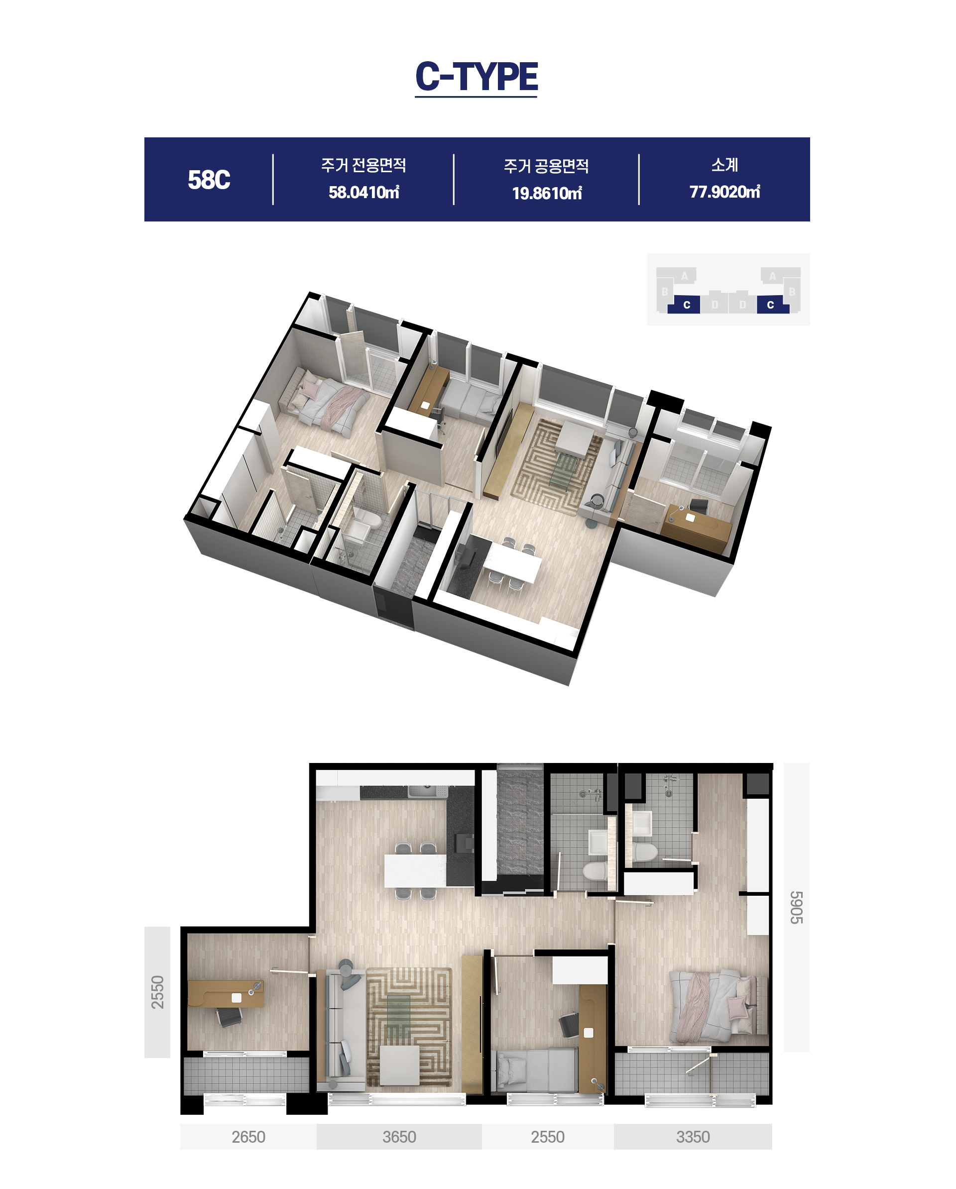 58㎡C(16세대) 4억 2300만 원 ~ 4억 5000만 원