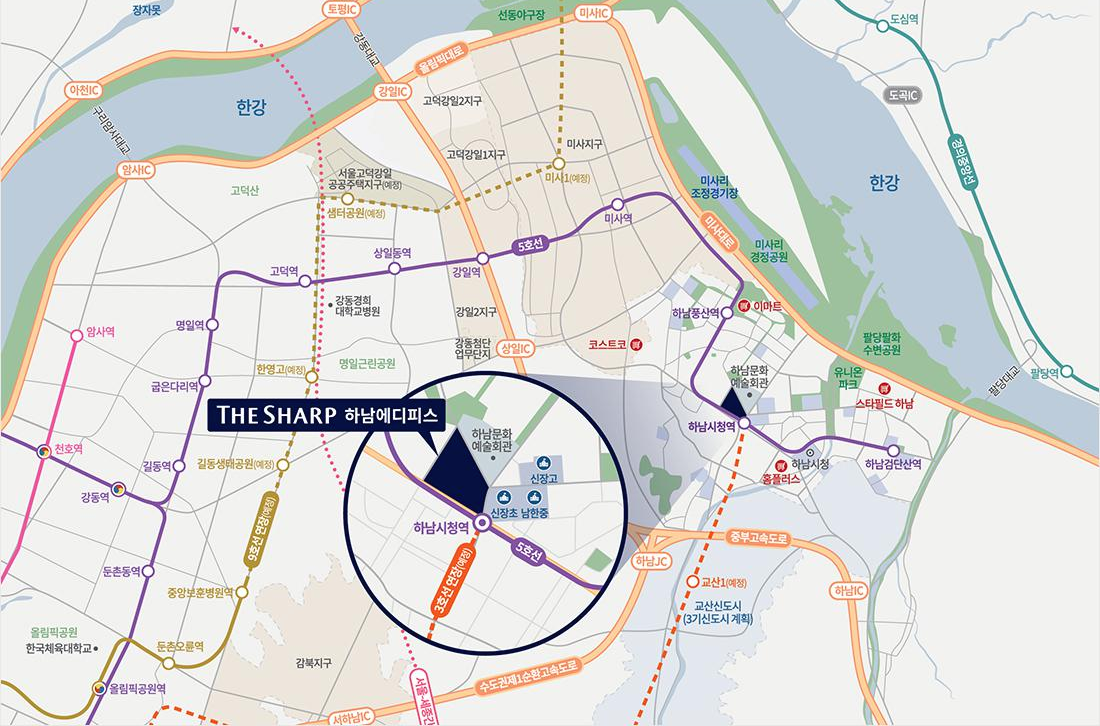 - 스타필드, 코스트코, 하남문화예술회관, 홈플러스 등 인접