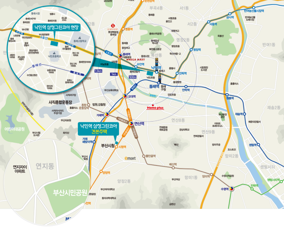 - 4호선 낙민역 도보 3분, 동해선 동래역 도보 5분 더블역세권