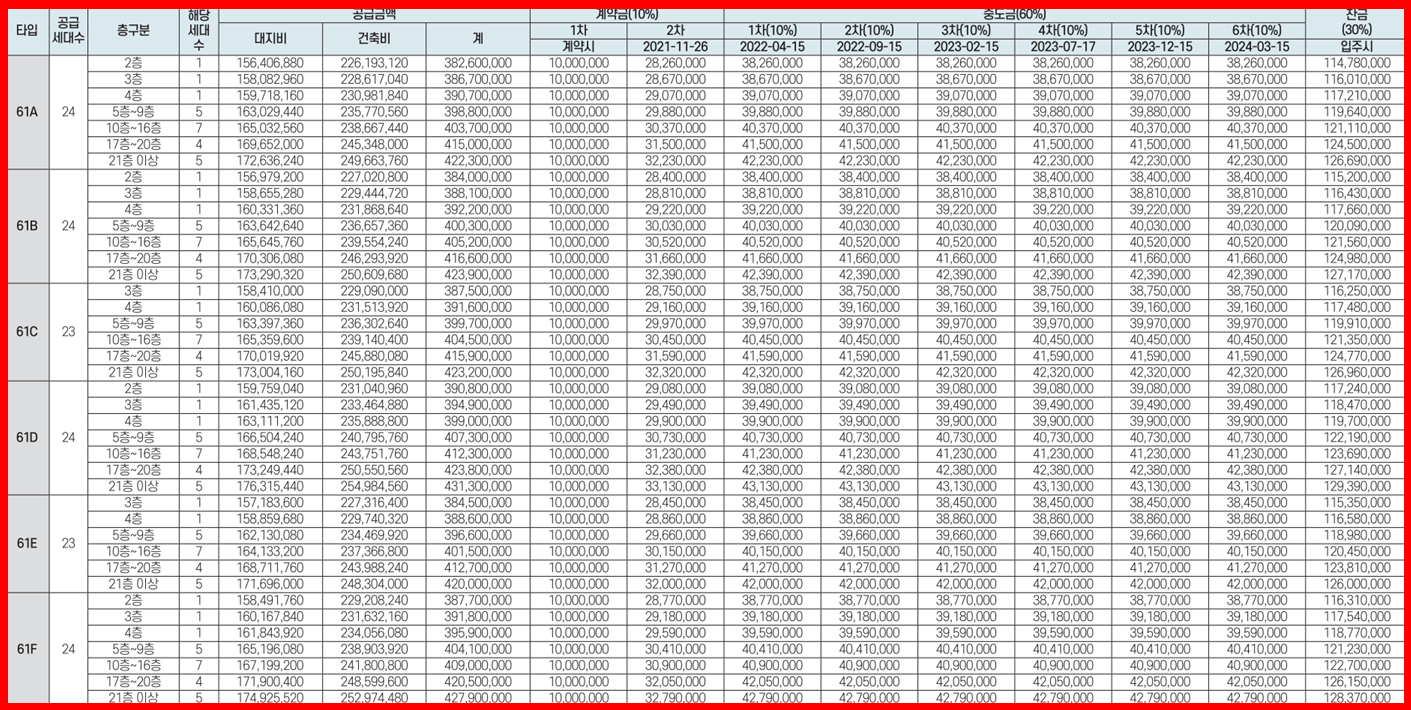 61㎡A(24세대) 3억 8260만 원 ~ 4억 2230만 원