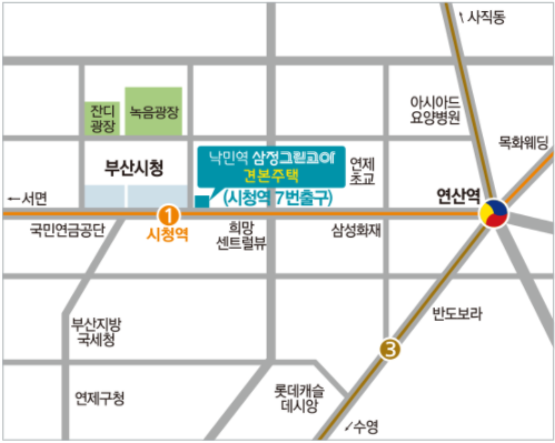 - 홈플러스 연산점, 메가마트 동래점, 동래시장, 동래봉생병원, 대동병원 등