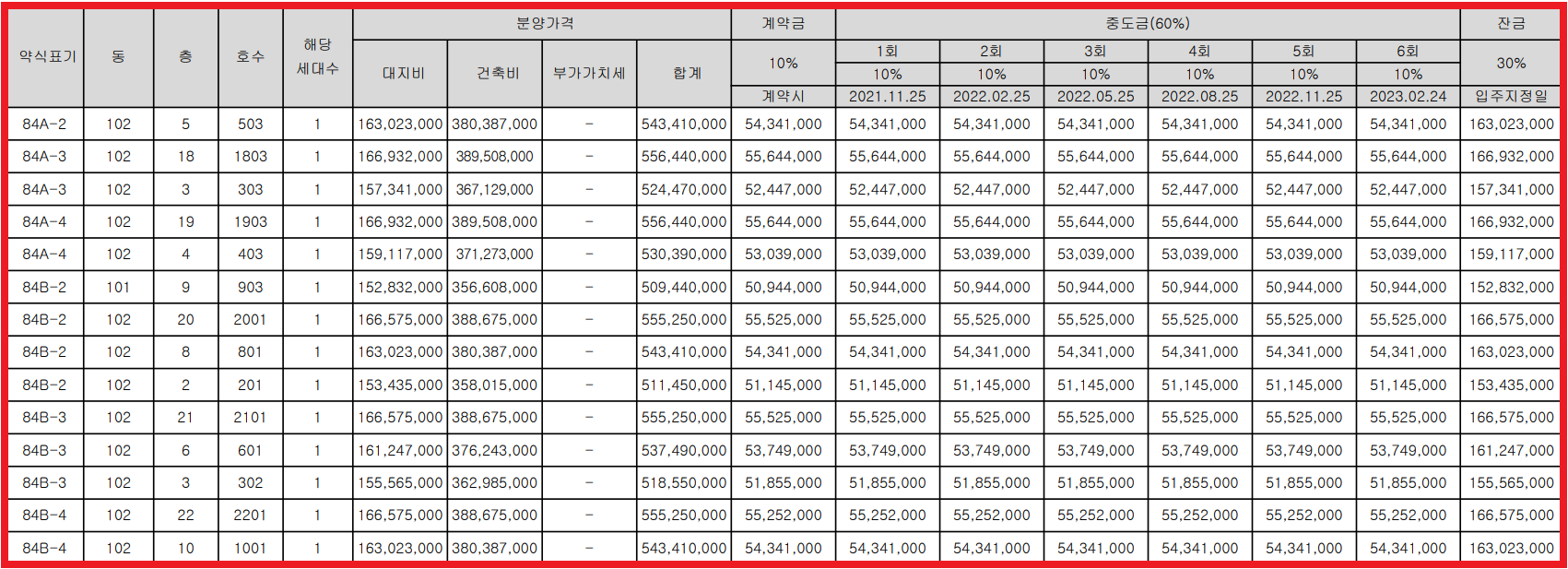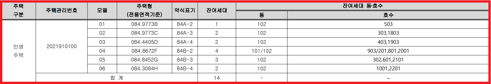 공급규모 : 아파트 지하 1층, 지상 16~23층 2개 동 총 124세대 정당계약 및 예비당첨자 계약 이후 잔여물량 14세대