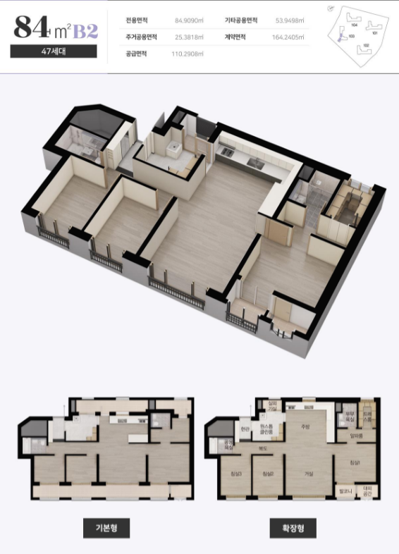 84㎡B2(47세대) 3억 4552만 원 ~ 3억 7180만 원