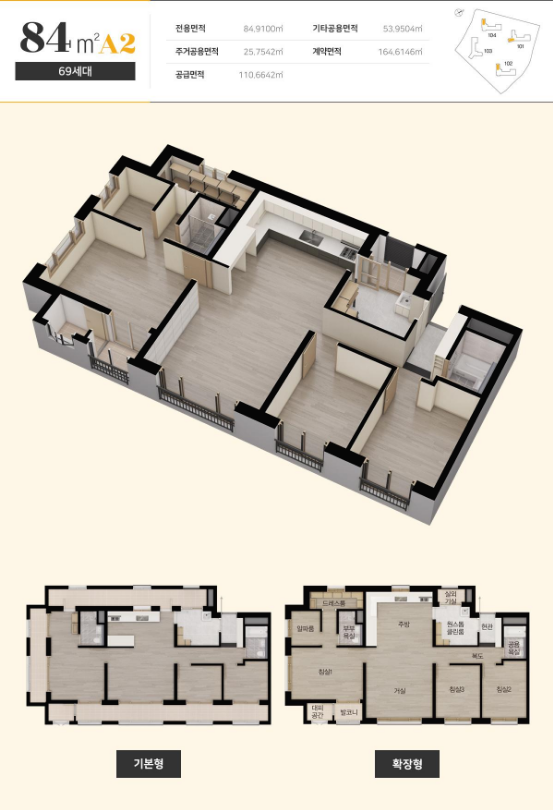 84㎡A2(69세대) 3억 5615만 원 ~ 3억 8356만 원