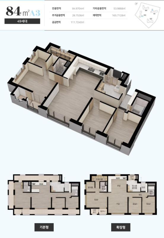 84㎡A3(49세대) 3억 5690만 원 ~ 3억 8438만 원