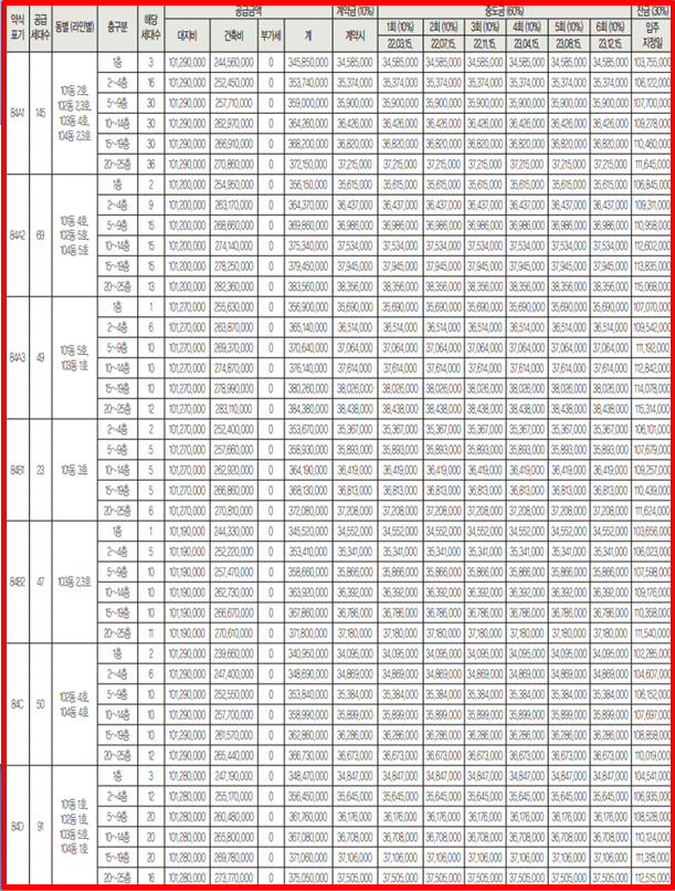 84㎡A1(145세대) 3억 4585만 원 ~ 3억 7215만 원