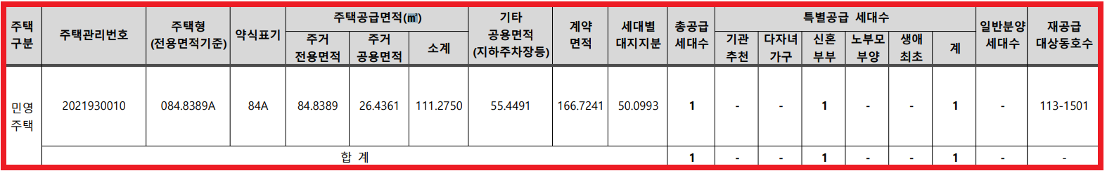 [특별공급 1세대(신혼부부 1세대)] 및 부대복리시설