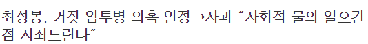 보도에 따르면 최성봉은 "최성봉 거짓 암 투병' 진위여부 논란에 대하여 사회적 파동과 큰 실망감을 안겨드린 점 진심으로 깊이 사죄드린다. 현재 '암 투병' 중이 아니며 앞서 보도된 주요 우울병 장애, 외상 후 스트레스 장애를 제외한 갑상선 암, 대장암, 전립선암, 폐와 간 및 신장전의 진단 사실들은 모두 허위 사실임을 밝힌다"라고 밝혔습니다.