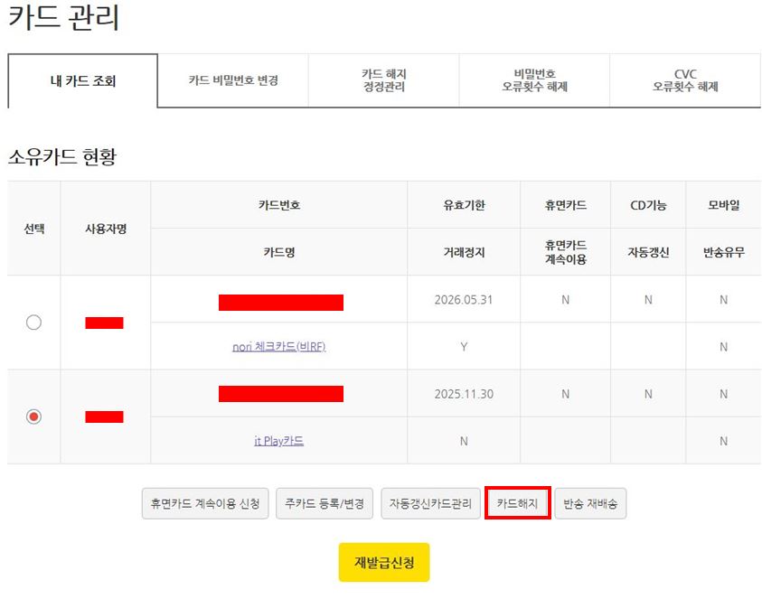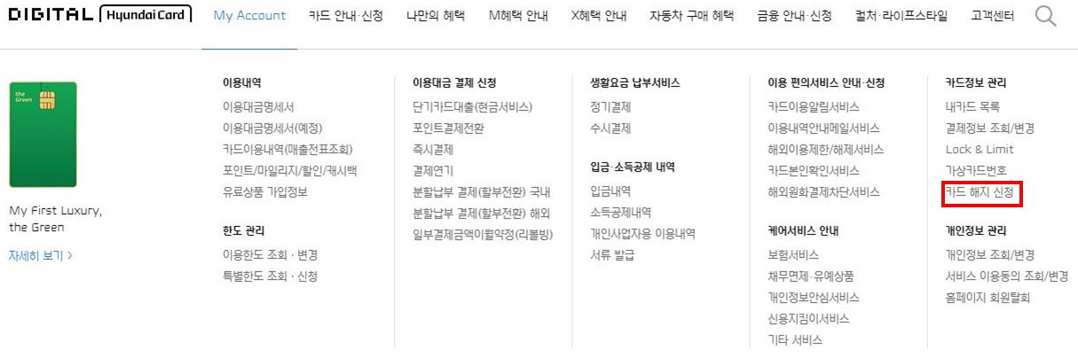 My Account → 카드 해지 신청