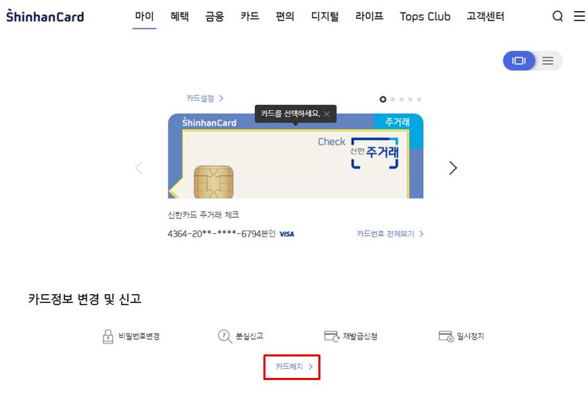 마이 → 카드해지