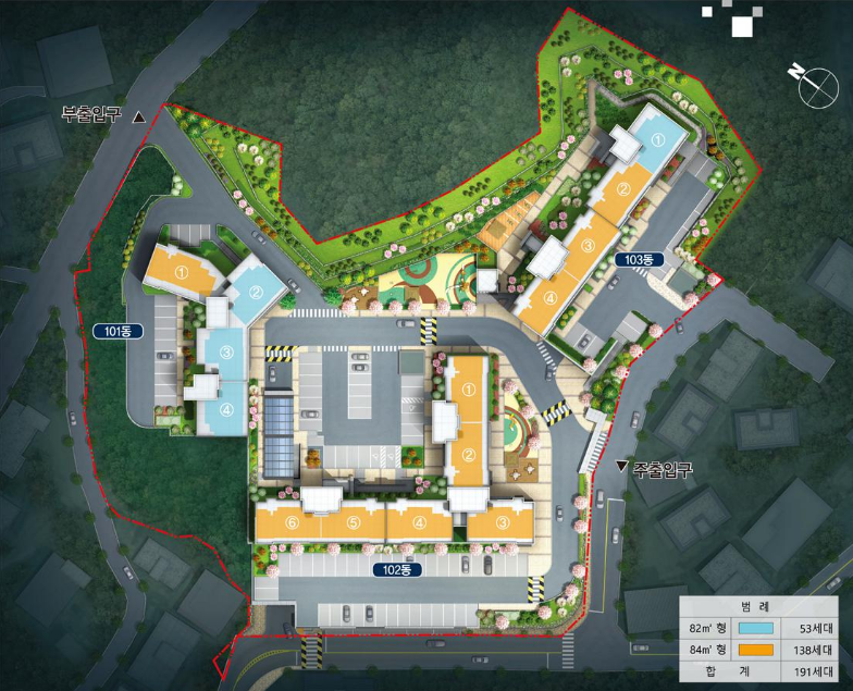 공급규모 : 아파트 지하 2층, 지상 12~15층 3개 동 총 191세대 중 일반공급 191세대