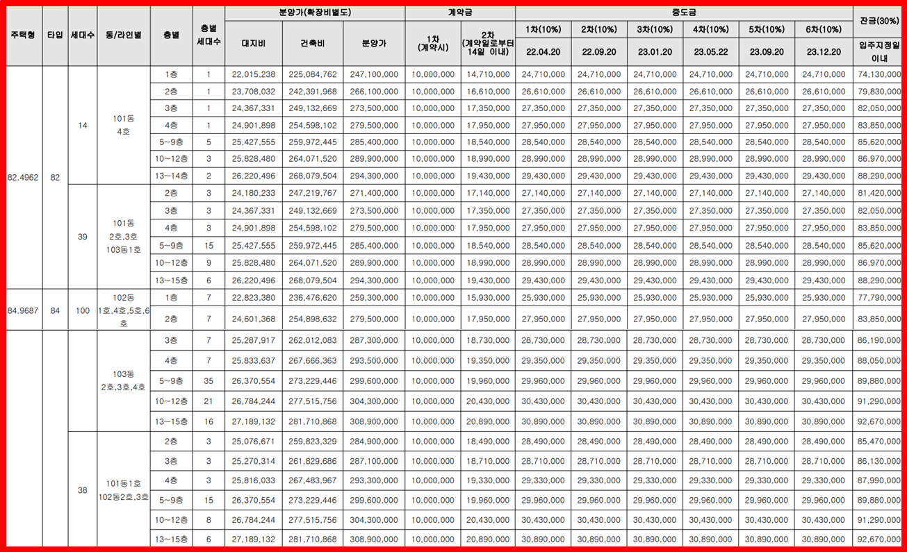 82㎡(53세대) 2억 4710만 원 ~ 2억 9430만 원