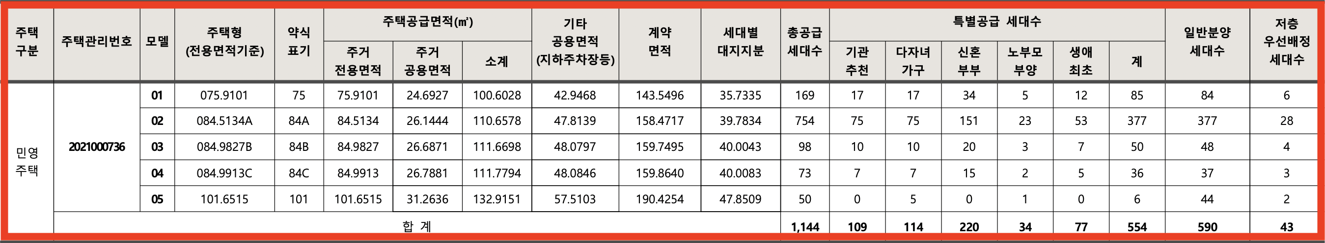 [특별공급 554세대(일반[기관추천] 특별공급 109세대, 다자녀가구특별공급 114세대, 신혼부부특별공급 220세대, 노부모부양특별공급 34세대, 생애최초특별공급 77세대 포함)]