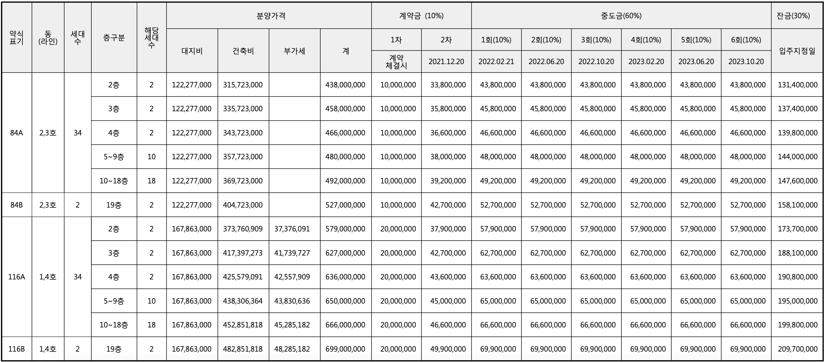 ◈ 분양가(공급금액 및 납부일정)