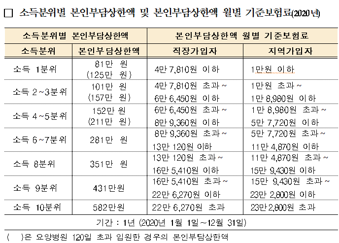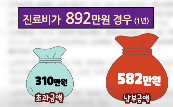 병원에서 보험료가 적용되는 진료만 하셨다면 소득이 아무리 많더라도 대한민국 국민이라면 병원비는 1년에 최대 582만 원까지만 내는 거죠.
