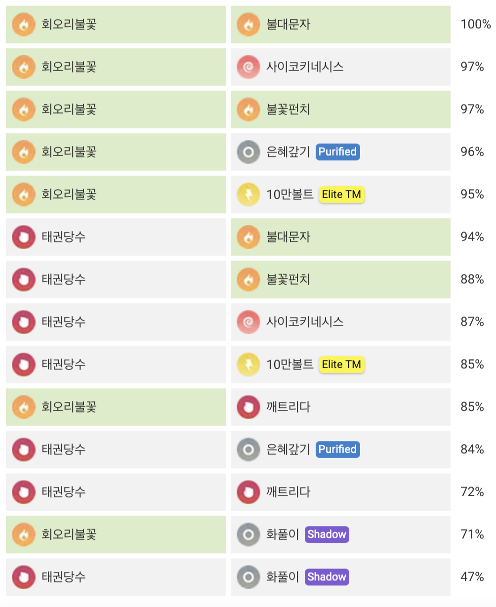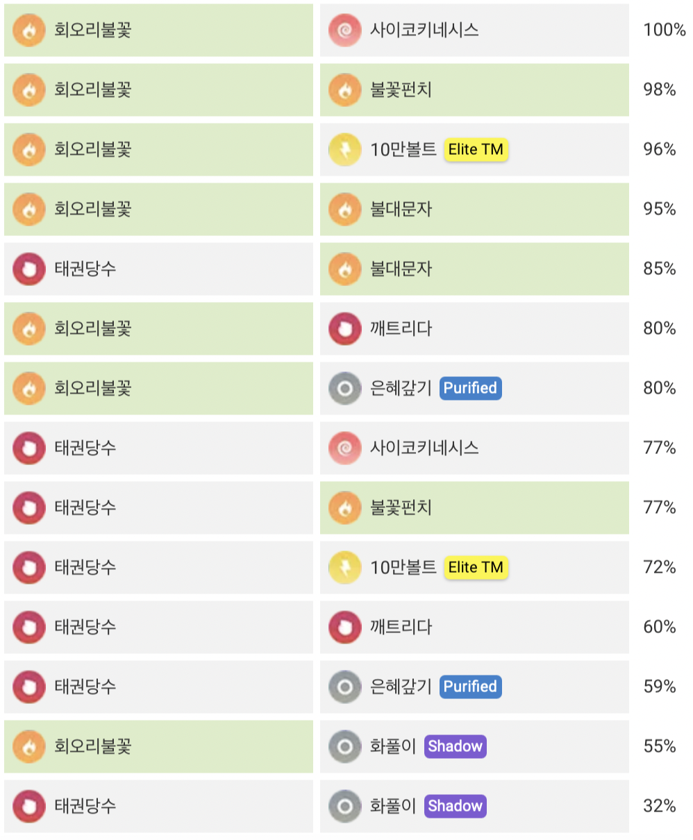 상성 물, 땅, 바위 불꽃 풀, 얼음, 벌레, 강철