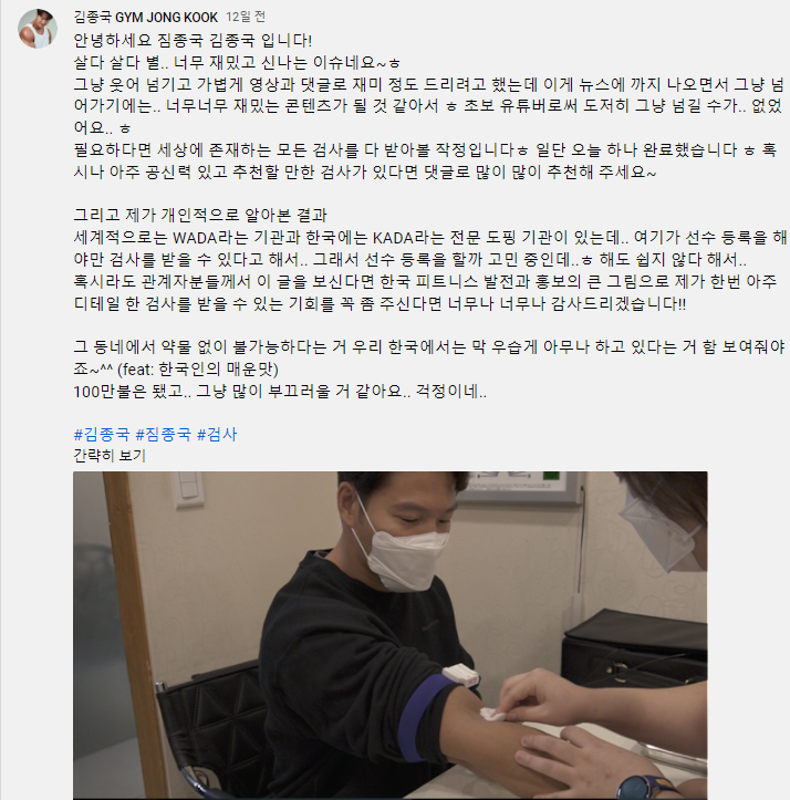 무튼 김종국은 391가지 도핑검사를 진행 중이며 결과를 기다리고 있다.