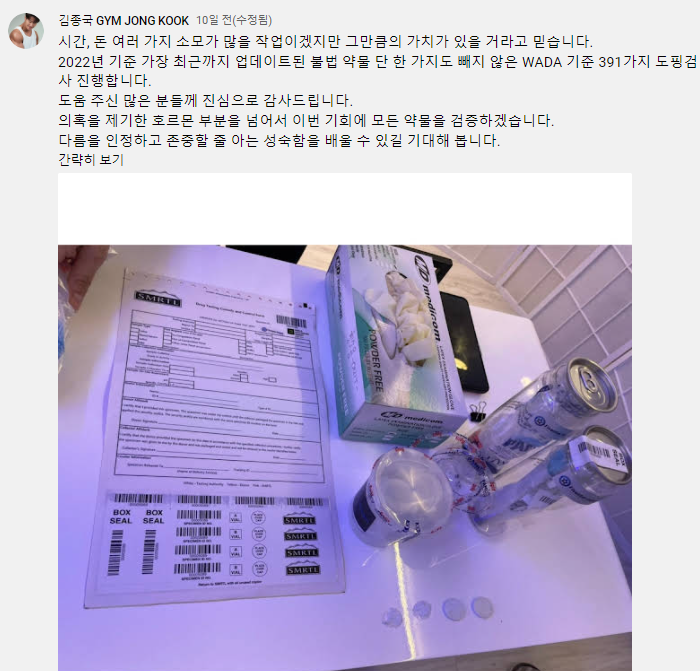 특히 처음 약물을 의혹을 제기한 캐나다 유튜버 그렉 듀셋에 대해 "최소한 그분이 사람으로서, 남자로서 사과하고 멋있게 받아들일 기회를 드리고 싶다"라며 "사과를 하든 안 하든 도핑 결과가 나오면 난 무조건 마무리를 할 것이다. 이번만큼은 조치를 취해야 될 것 같다"라는 법적 대응 선언을 시사했다.