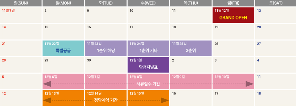 특별공급(기관추천, 다자녀, 신혼부부, 노부모부양, 생애최초) : 2021년 11월 22일 월요일