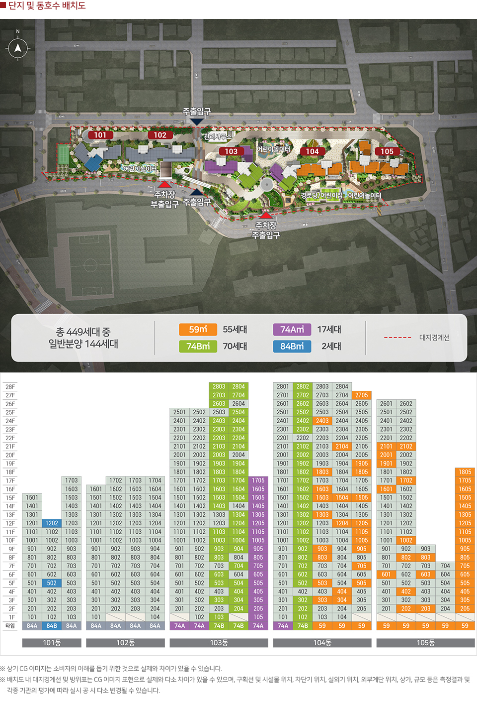 공급규모 : 아파트 지하 2층, 지상 7~28층 5개 동 총 449세대 중 일반공급 144세대