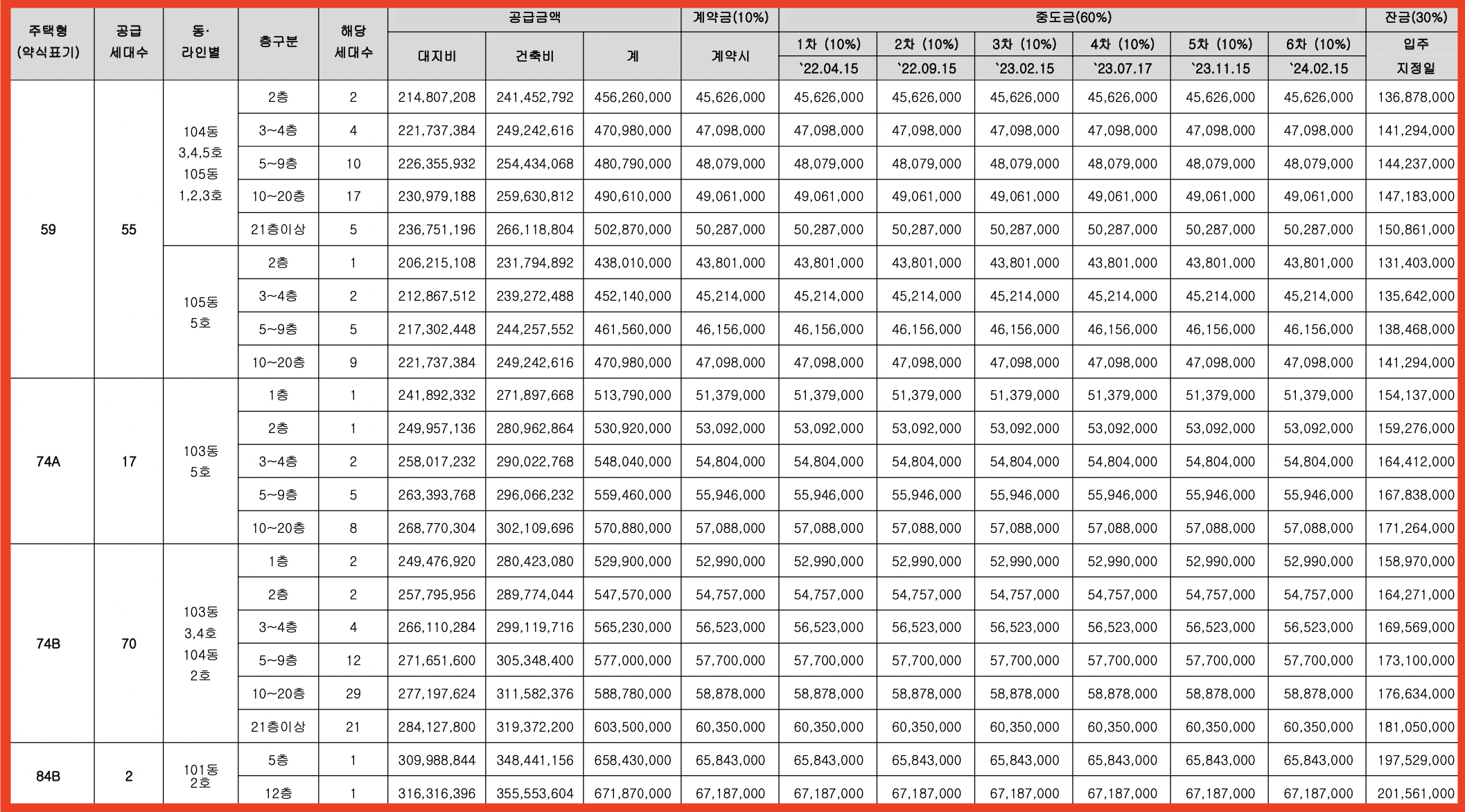 주택형 : 59㎡ / 74㎡ / 84㎡