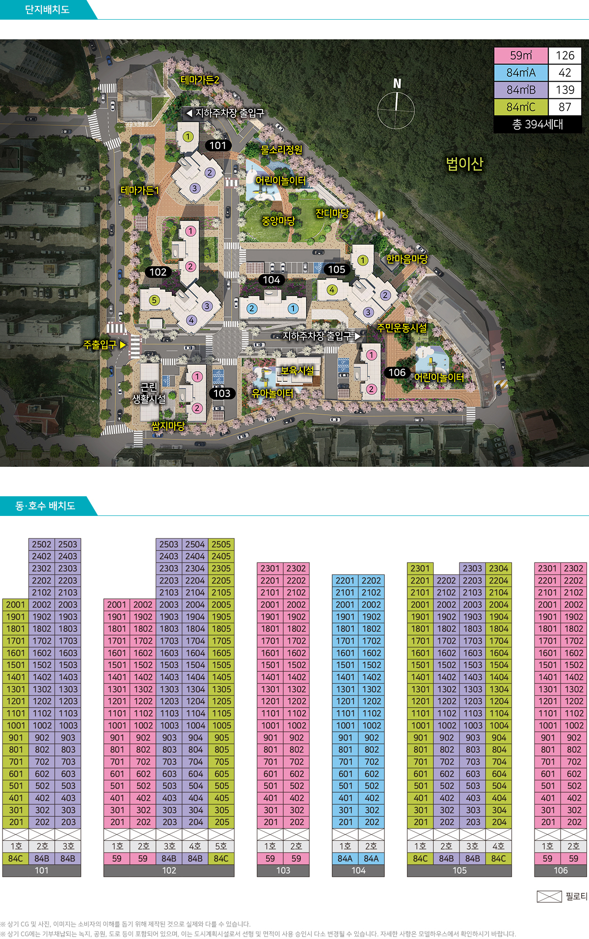 ◈ 수성레이크 우방아이유쉘 아파트 단지 및 동·호수 배치도