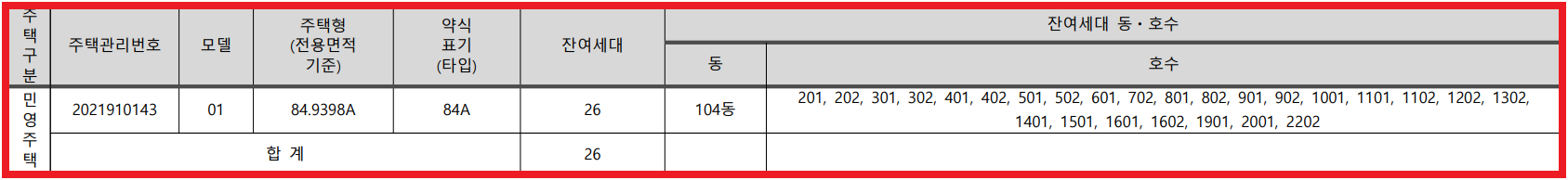 여러가지 사유로 잔여물량 394 세대 중 26세대 나왔네요.