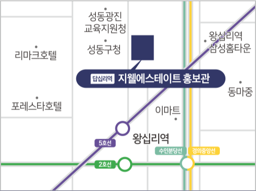 - 선릉역 약 21분, 광화문역 약 17분대로 통하는 5호선 답십리역 4번출구 앞