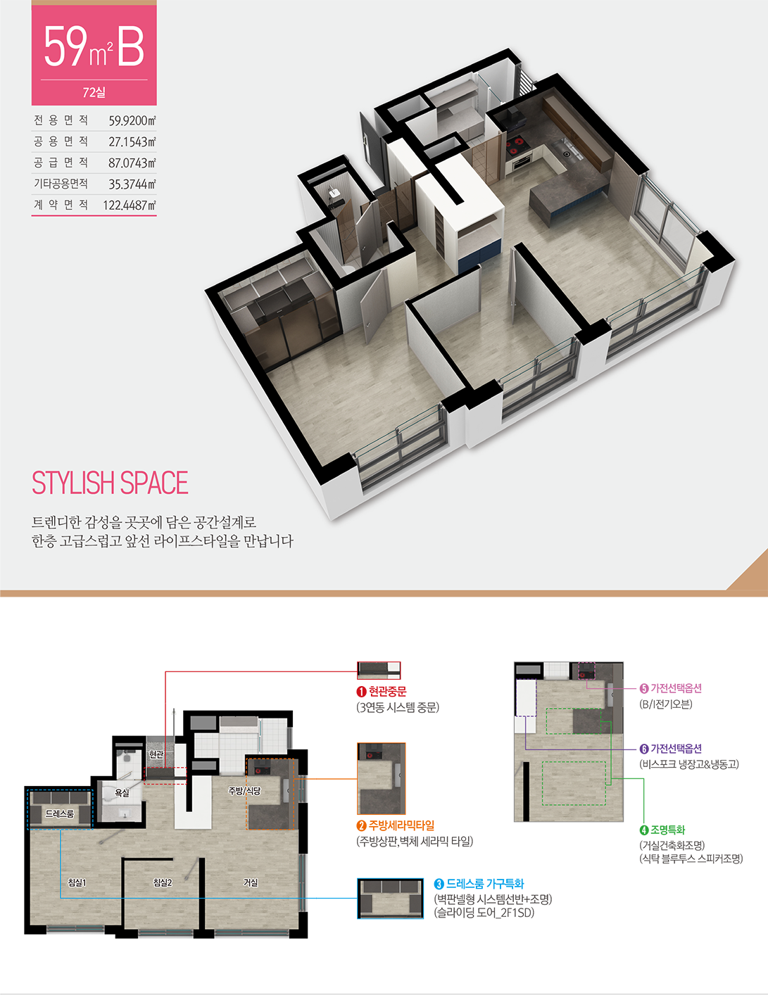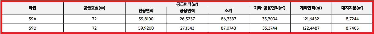 59㎡A(72실) 최저가 : 6억 4940만 원 - 최고가 : 7억 3920만 원