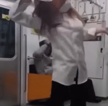 10초에서 20초 정도 분량의 영상인데 이 영상에서 여성은 지하철 바닥에 드러누워 '인생은 X스"라고 수차례 크게 외치고 있습니다. 이어 바닥에서 일어나면서 머리를 격하게 흔들며 춤을 추기도 하고 또 남성에게 다가가 "저 너무 귀엽죠?"라고 말하기도 합니다.