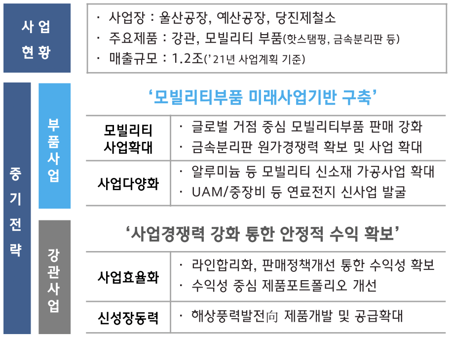 - 사업본부 신설 후, 차부품 및 강관사업 경쟁력 강화 추진