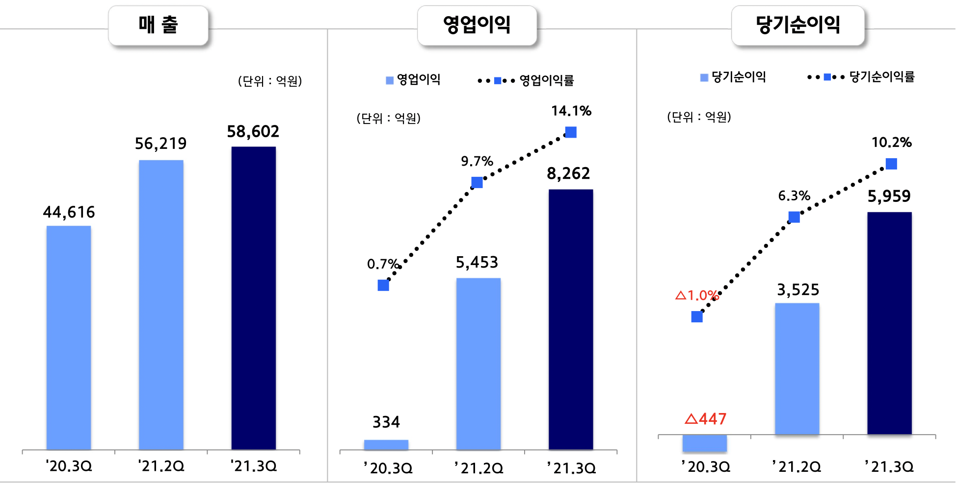 ③ 21년 3분기 매출액 : 5조 8,602억