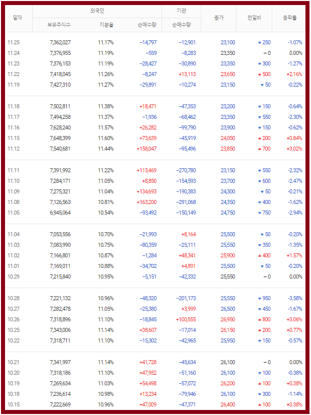 계속해서 주가 우하향중.. 내년 실적 개선을 시작으로 반등을 할 수 있을지 지켜봐야겠다.