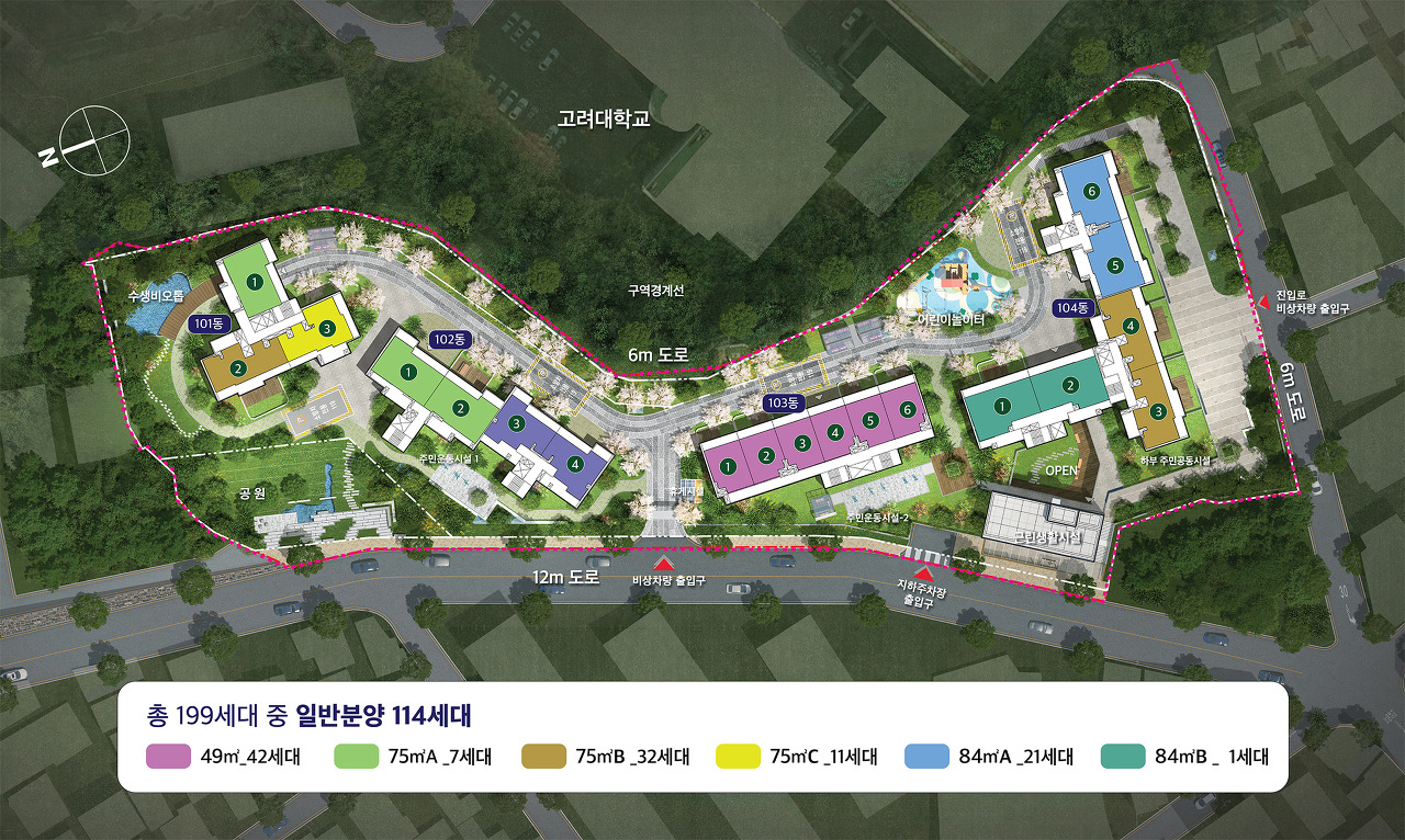 공급규모 : 아파트 지하 2층, 지상 12층 4개 동 총 199세대 중 일반분양 114세대