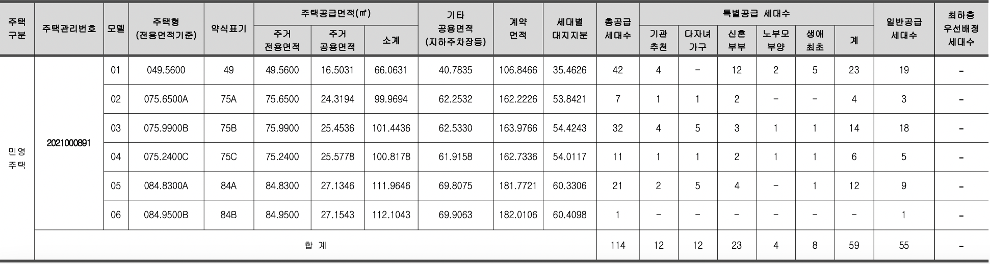 [특별공급 49세대(일반[기관추천] 12세대, 다자녀가구 12세대, 신혼부부 23세대, 노부모부양 4세대, 생애최초 8세대 포함)] 및 부대복리시설